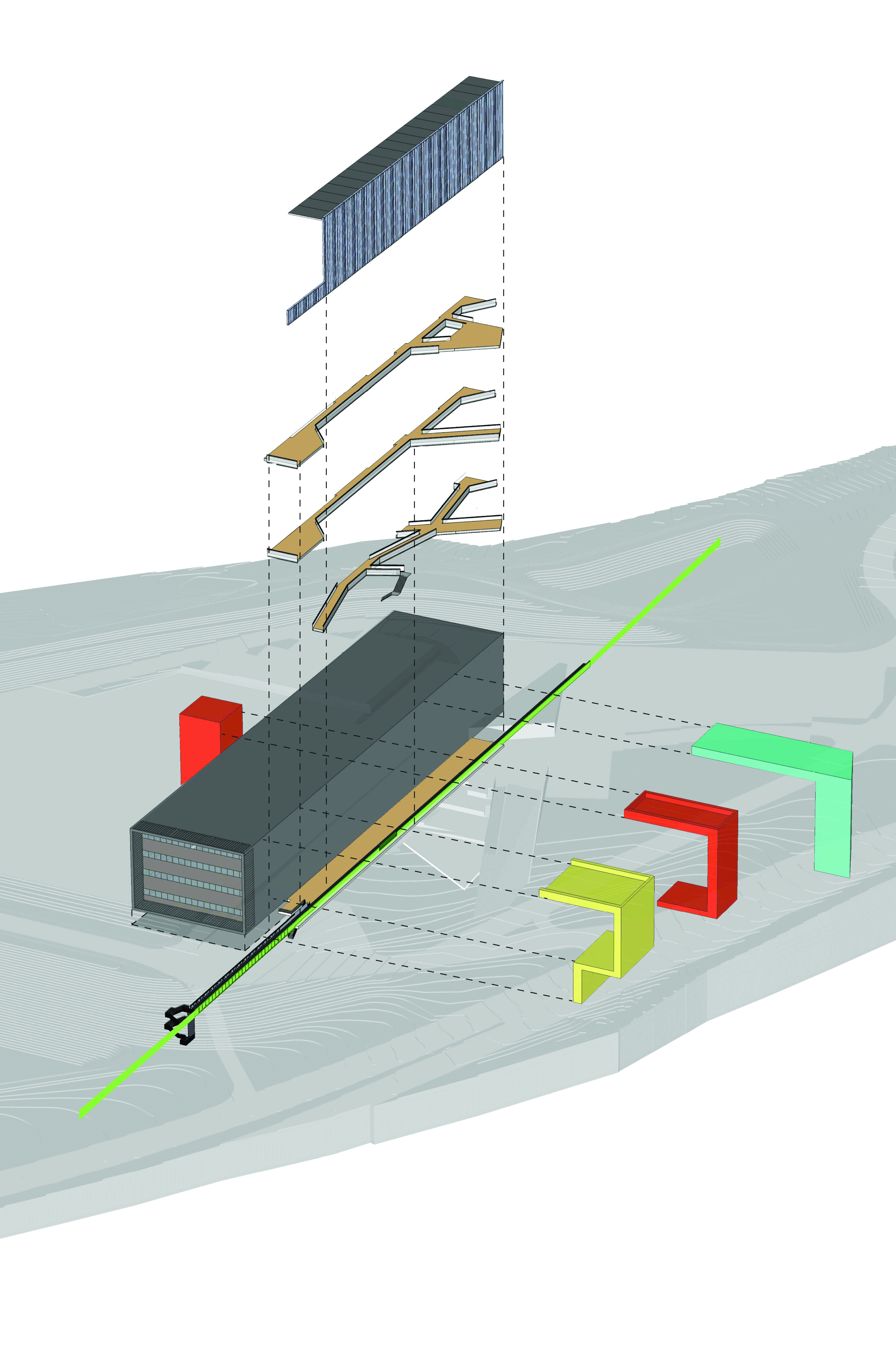 The design concept is a product of both the site and the building’s program, and most importantly the particular reactions between the two. Further explanation and appreciation of the design concept requires additional information about the project, including diagrams and other drawings that are too sensitive to release at this time.